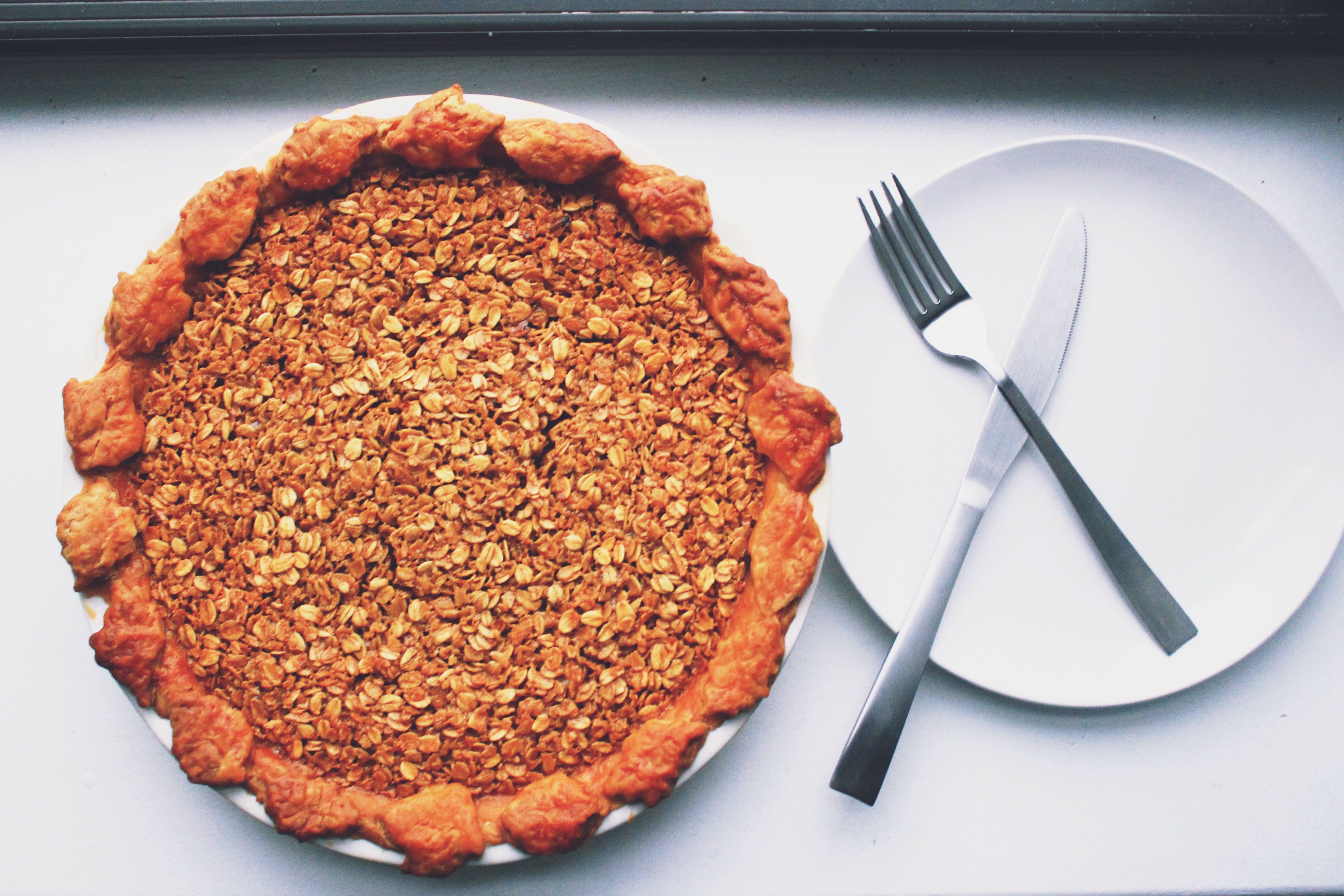 Lizzie (the Birthday Queen) chose this month’s pie, which is essentially an oatmeal cookie with a layer of chocolate ganache on the bottom all wrapped in a flaky butter crust–what’s not to love? We even added a few leaves to the edges cause we’re #basic like that.