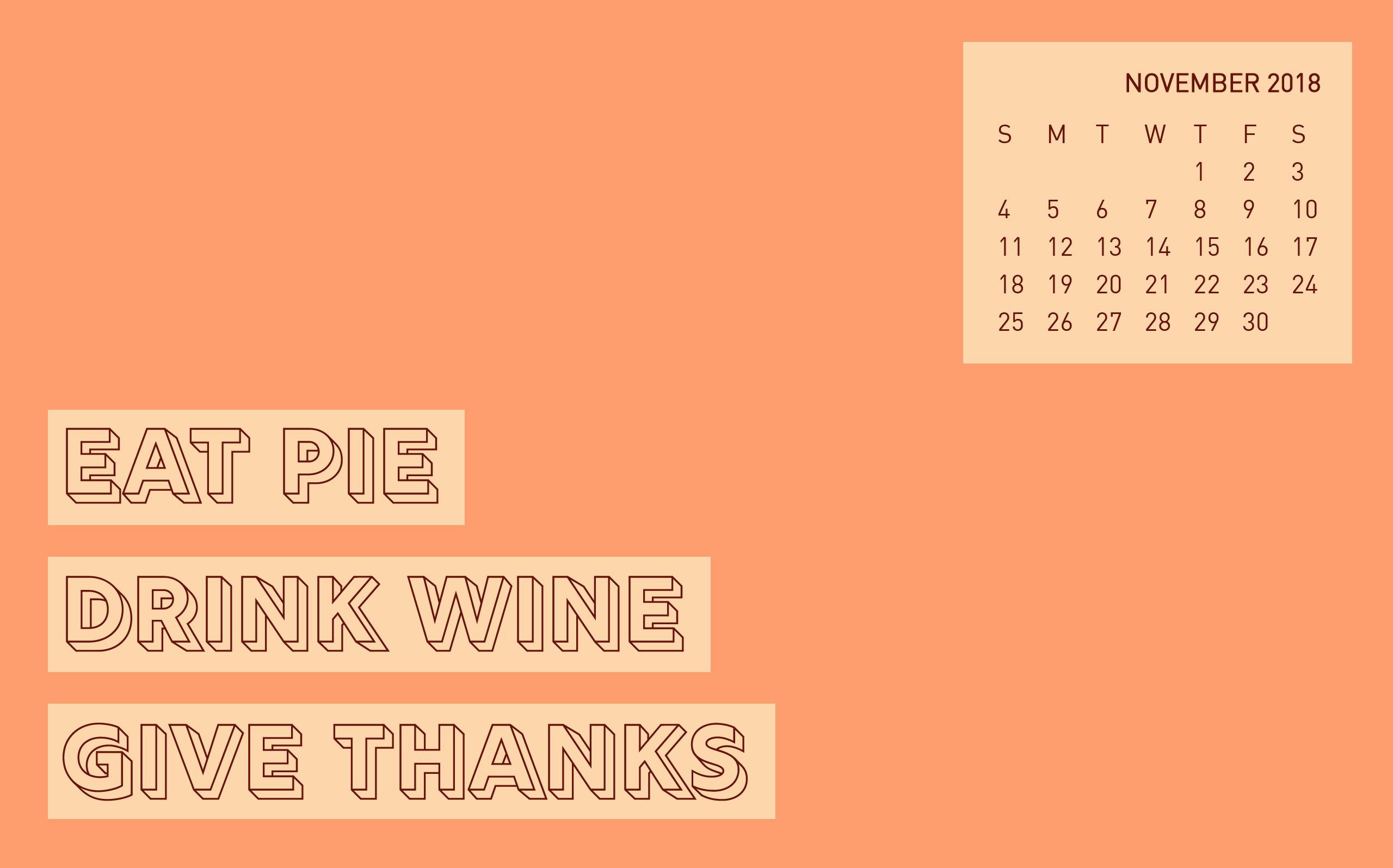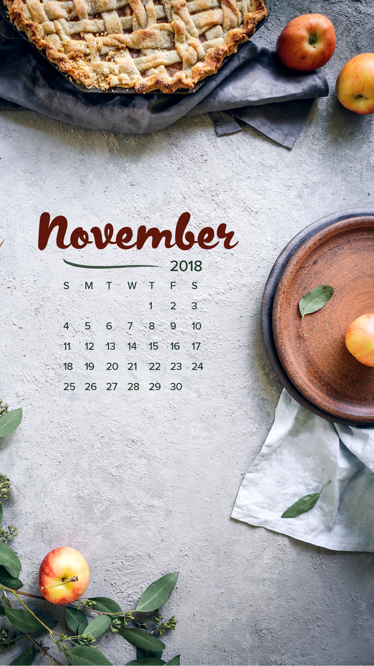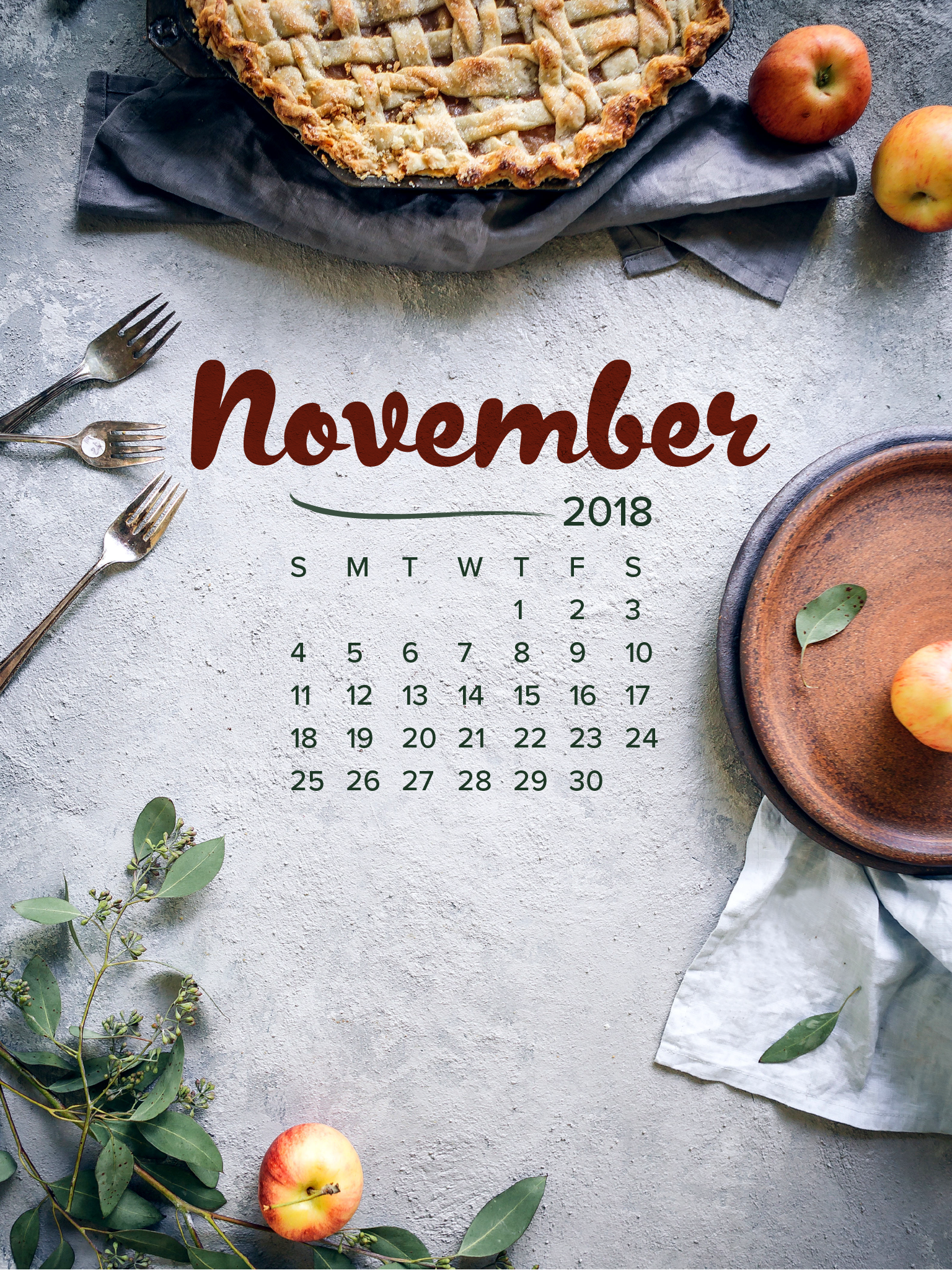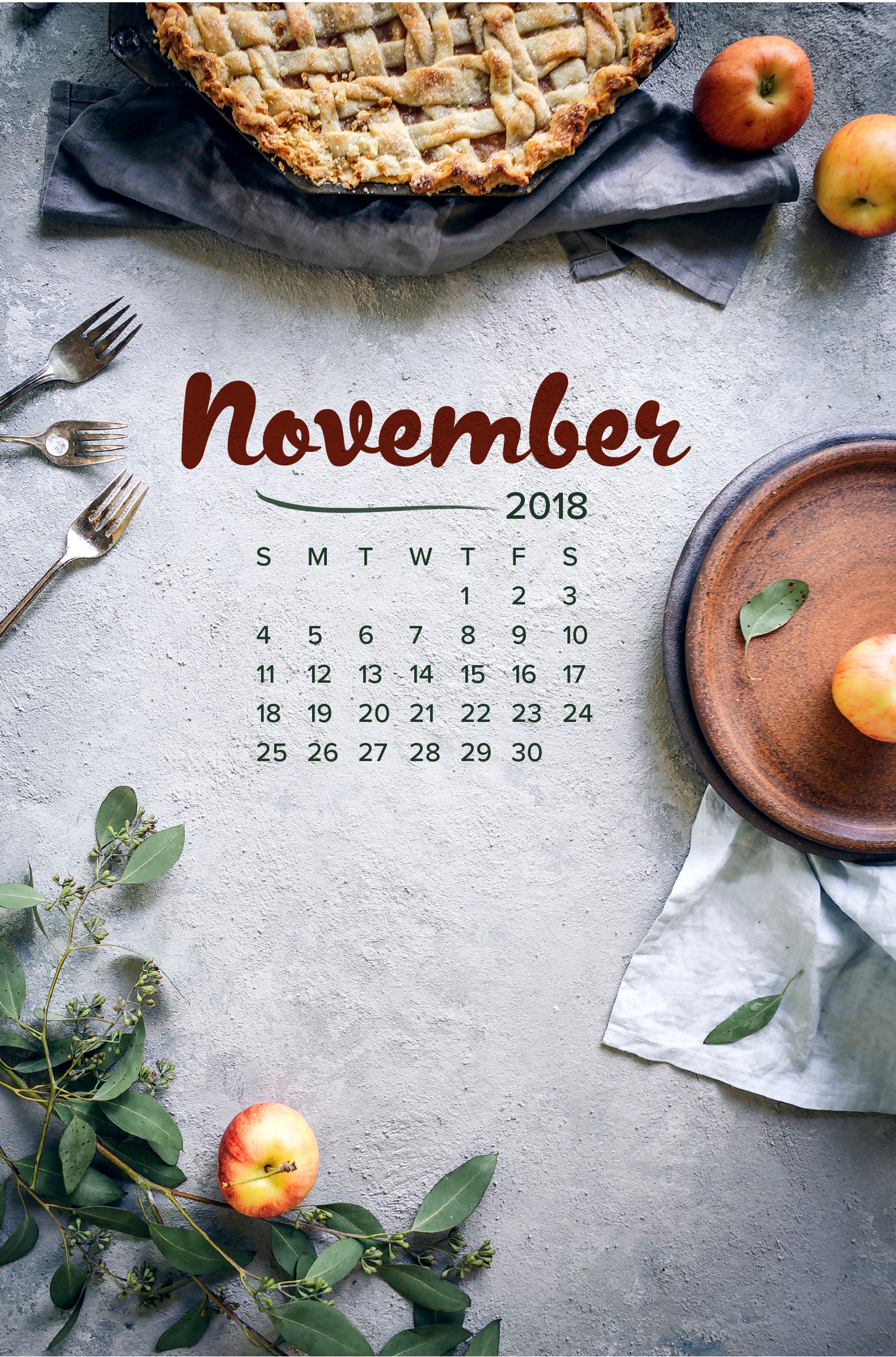Here are some tech backgrounds to inspire all your pie baking this month. Each download includes November calendar wallpapers for desktop, phone and tablet dimensions.